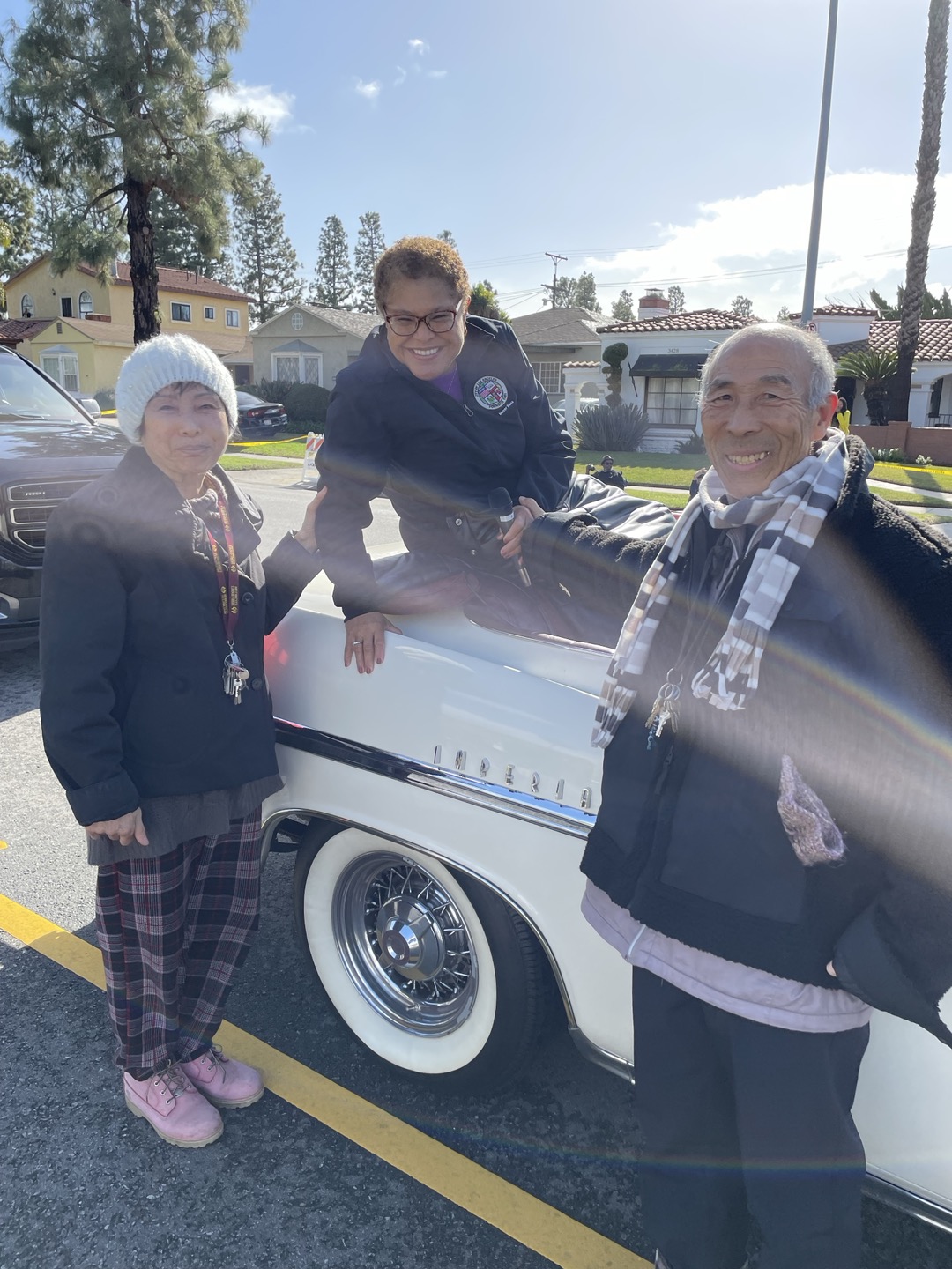 마틴루터킹데이를 기념한 퍼레이드에 참석힌 LA시장 Karen Bass (카렌 바스)와 인사를 나누고 있다.