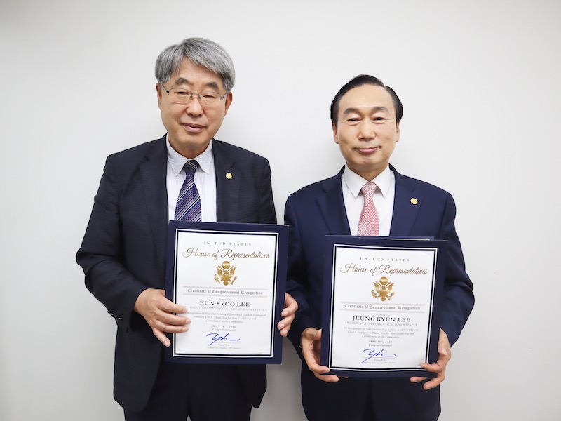 이은규 총장은 “주정부가 아닌, 연방정부에서 주시는 이 표창장을 받으신 분들이 많지 않으신 걸로 안다”며 “연방 하원의원회의 허락을 받지 않으면 쉽게 받지 못하는 것으로 알고 있는데, 미주대한신학대학이 이민 사회에 큰 영향력을 미쳤고, 그 출신들이 지도자 역할을 잘 감당하고 있는 것을 알아주셔서 상을 받았다고 생각한다”고 말했다.
