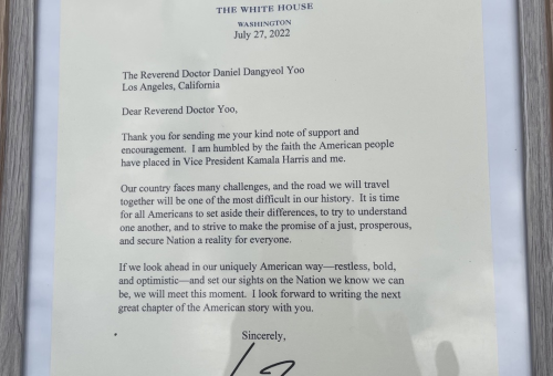 현재 미주 교회신보 발행인이며 평양신학 총장이고 미주 대한신학 대학교(대신 총화 인준)재단 이사장인 류 당열 목사(Daniel Dangyeol Yoo)에게 미국 바이든 대통령께서 교계와 교포 사회에 봉사, 헌신에 대하여 친서 감사장을 보내 왔다.