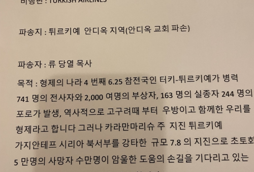 • [미주교계뉴스] 터키 튀르키예 지진 지역 선교 봉사 파송 미주교회신보2023.03.09