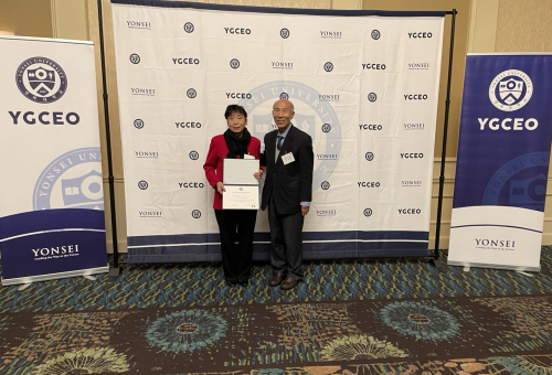 본지 발행인 류 당열 목사 부부, 연세대학 최고 경영자 수료 증서